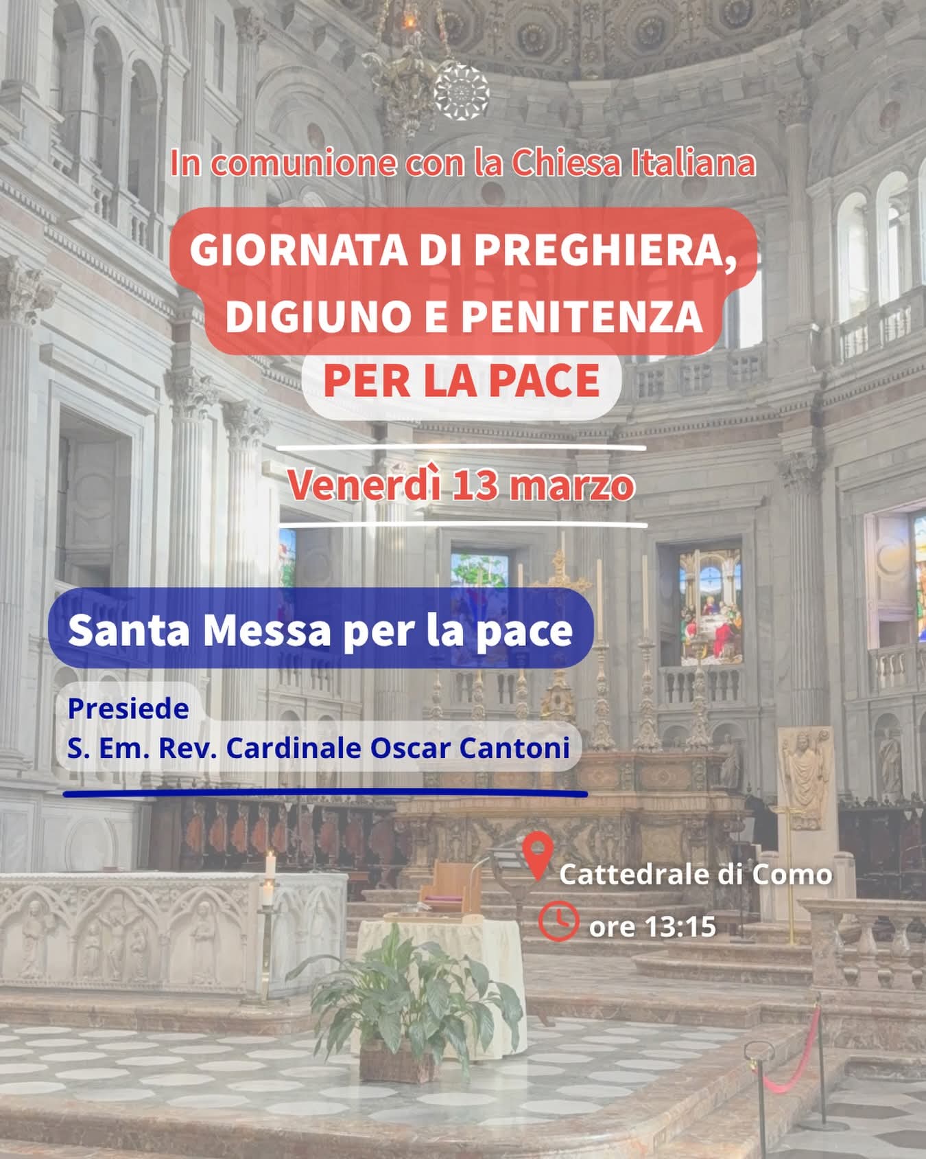 In comunione con l’intera Chiesa italiana, anche la Diocesi di Como, venerdì 13 marzo vivrà la Giornata di preghiera, digiuno e penitenza per la pace.