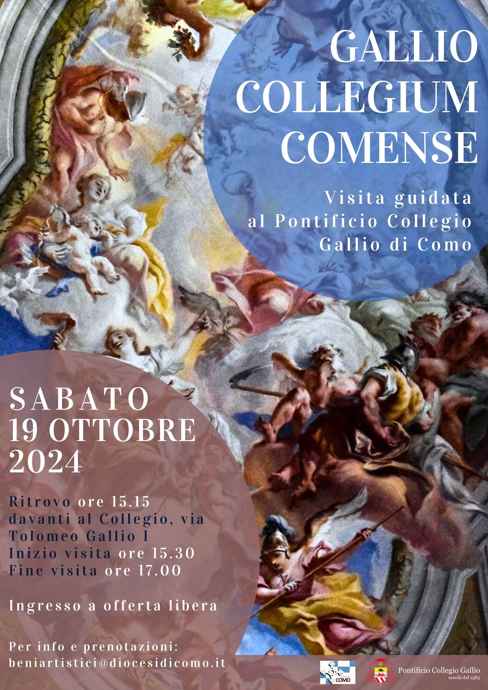 Alla storia e alle testimonianze artistiche che si conservano in questa importante istituzione didattica è dedicata la visita guidata “Gallio Collegium Comense” che si svolgerà sabato 19 ottobre 2024, a partire dalle ore 15.30. La visita sarà curata da Chiara Brizzolari e Beatrice Pizzi (Ufficio Beni Artistici della diocesi di Como).