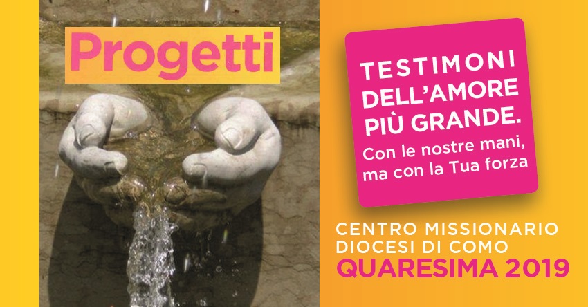 Come ogni anno, al sussidio per le preghiere e per le riflessioni “Testimoni dell’amore più grande” che quotidianamente potete trovare sul sito diocesano,  si accompagnato da un piccolo pieghevole con i progetti individuati dallo stesso Centro missionario e dalla Caritas diocesana per la Quaresima 2019. La diocesi ha deciso di sostenere i progetti delle parrocchie di Fatima, Puente Piedra, San Pedro in Perù; in Camerun; in Romania; presso le Isole Salomon; in Brasile; in Eritrea; in Venezuela; in Sud Sudan; lungo la Balkan Route.