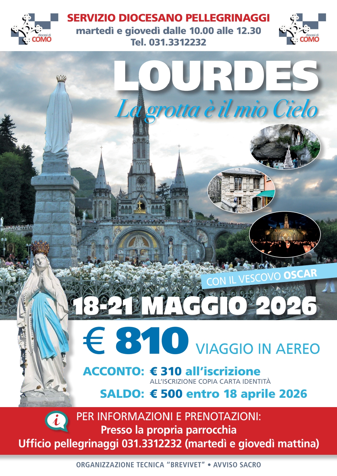 Info e prenotazioni presso la propria parrocchia oppure presso il Servizio diocesano pellegrinaggi tel. 031 3312232 (martedì e giovedì mattina).