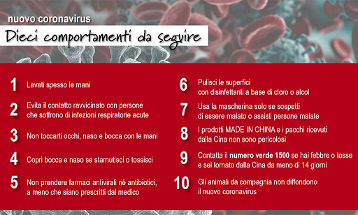 Altra raccomandazione degli esperti è quella di contattare il numero verde 1500 in caso di sintomi sospetti in persone di rientro dalla Cina o per avvenuto contatto con le stesse. Prestare massima attenzione al fatto che questi sintomi insorgano entro i 14 giorni dal ritorno nel proprio Paese: il periodo di incubazione del Coronavirus, infatti, varia da 1 a 14 giorni. La regola di base è comunque indossare una mascherina, usare fazzoletti monouso e lavare bene le mani.