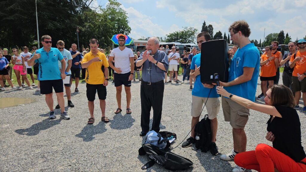 «Insieme a me – ha detto ancora il cardinale Cantoni nel suo saluto – ci sono decine di persone orgogliose di voi e che pregano per voi: spero che sentiate questo affetto e, soprattutto, che abbiate pregato. Questa è la vostra GMG. Ce ne saranno altre, è vero, ma ora siete chiamati a vivere questa GMG. Non sprecatela! Questa è un’avventura significativa. Non andate come girovaghi, ma come pellegrini alla ricerca dell’Assoluto. È bello sapere che siamo in 400; vuol dire che la fede c’è ancora e voi siete testimoni di questa fede giovane. Al vostro ritorno dovrete accogliere missionariamente anche gli altri, i lontani. Voi siete discepoli e missionari… E ora “di fretta” andate a Lisbona! Posso dirlo: sono orgoglioso di voi!».