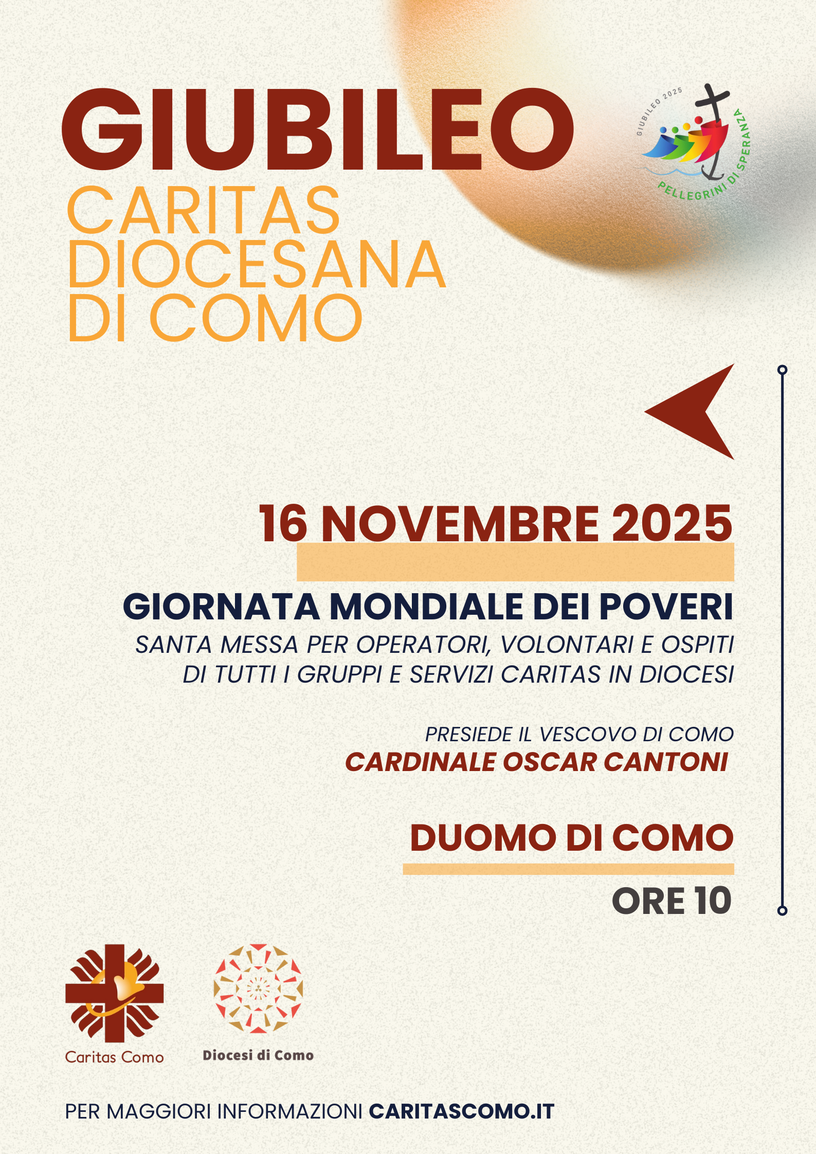 Domenica 16 novembre, alle ore 10.00, in Duomo a Como, il Vescovo, cardinale Oscar Cantoni, presiederà la Santa Messa giubilare alla quale saranno presenti operatori, volontari e ospiti di tutti i gruppi e servizi Caritas diocesani.