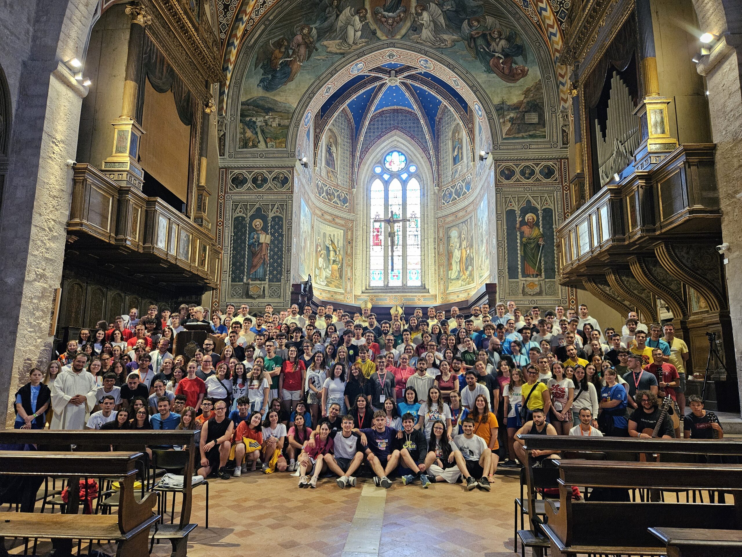 1) Messa ad Assisi – 30 luglio 2025: il Vescovo di Como, cardinale Oscar Cantoni, incontra 200 giovani della diocesi in viaggio per il Giubileo.